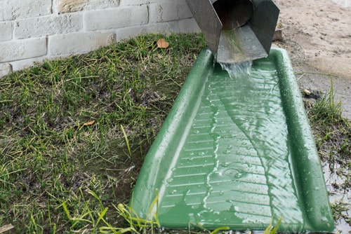 Может использоваться с любым видом водосточной трубы. Прочная конструкция отлично держится при любых погодных условиях. Также отведение воды таким способом предотвращает размывание почвы и следующее за этим проваливание грунта. Отведение лишней влаги полезно для растений — они получают необходимую воду из почвы, а при ее избытке могут подвергаться заболеваниям в виде загнивания корней, появления плесени на стволе.